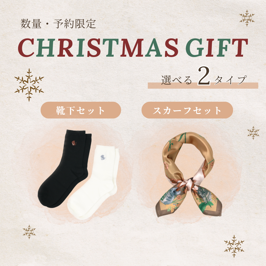 クリスマスに欠かせない靴下セットと、人気の新作スカーフセットの2種類をご用意いたしました!
