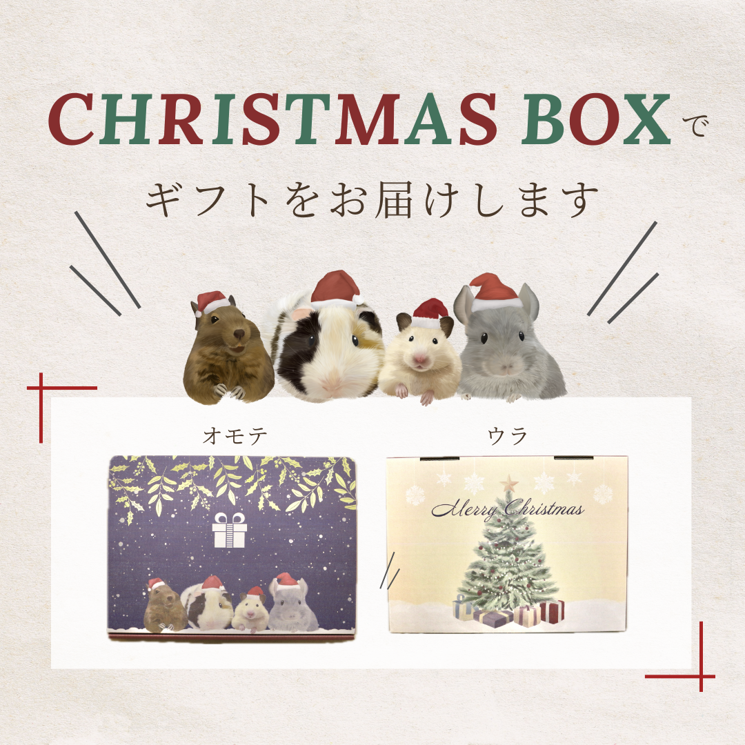 クリスマスギフトセットはチンチラ・デグー・ハムスター・モルモットのイラストが描かれたオリジナルBOXでお届けいたします!