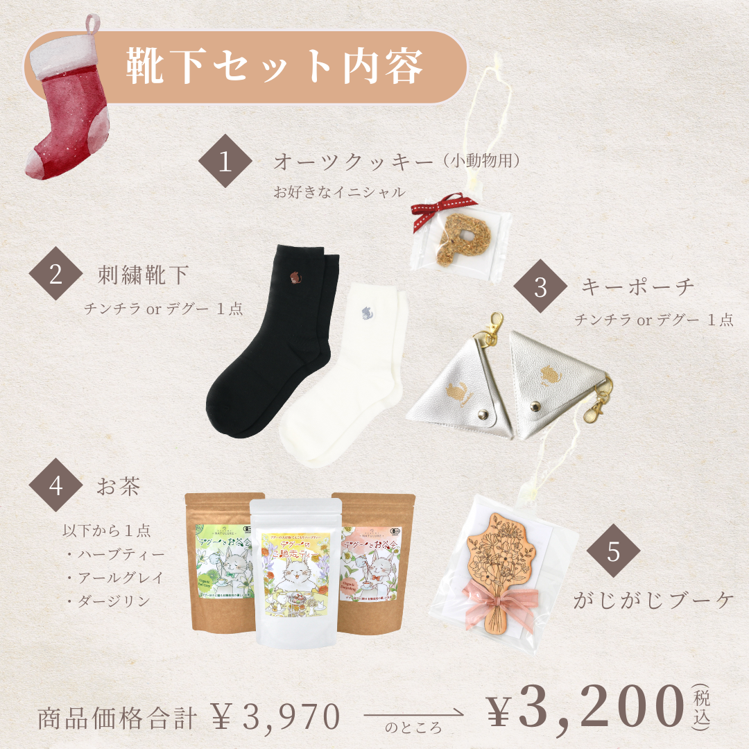 さりげないチンチラ/デグーのシルエットがかわいい靴下をセットにいたします。