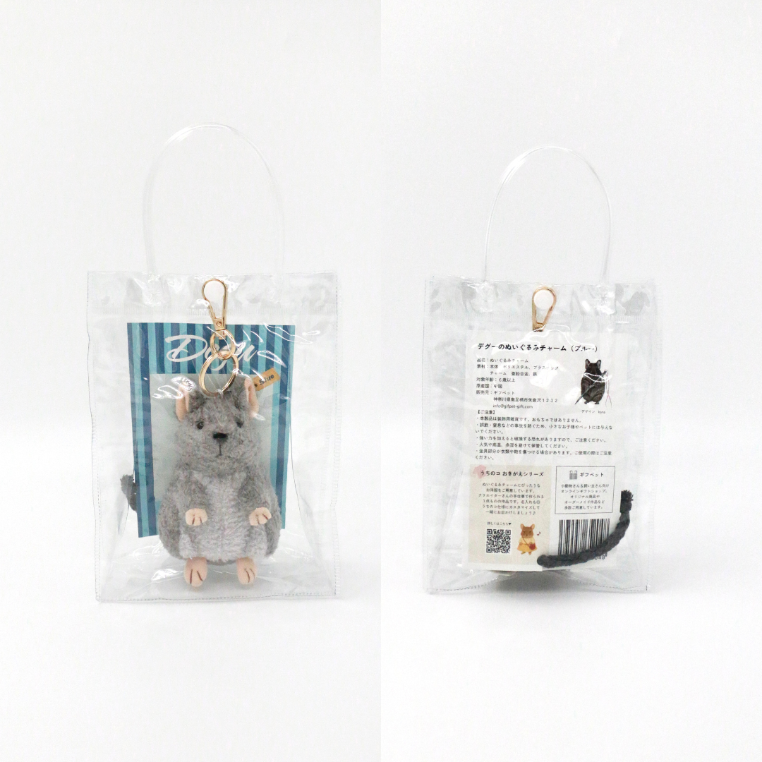 抱きしめたくなる手ざわりのデグーのぬいぐるみチャームです。