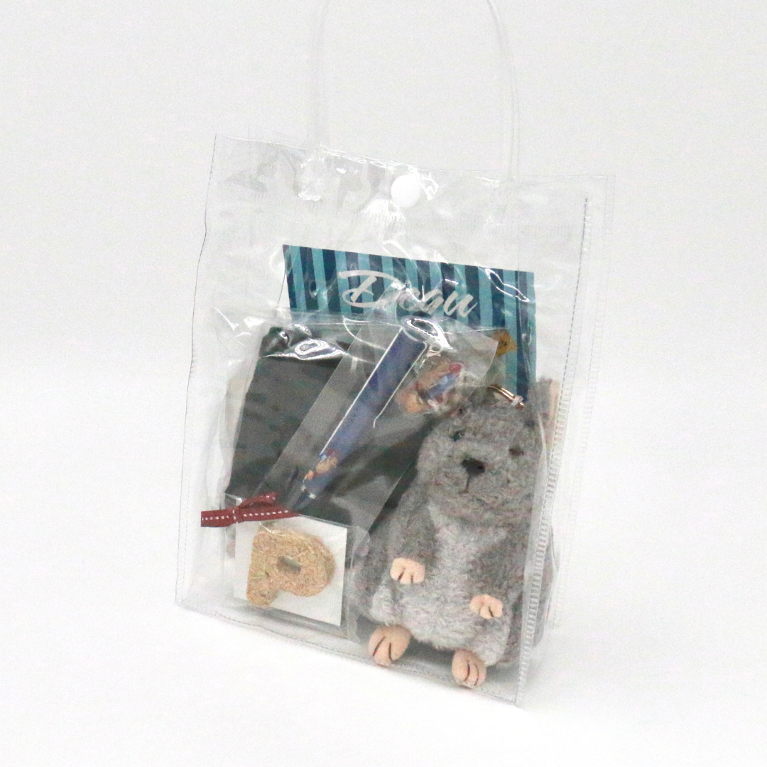 透明のビニールバッグに入れてお届け。中のぬいぐるみがそっと顔をのぞかせる、見せるギフト仕様。届いた瞬間から、ときめきがはじまります。