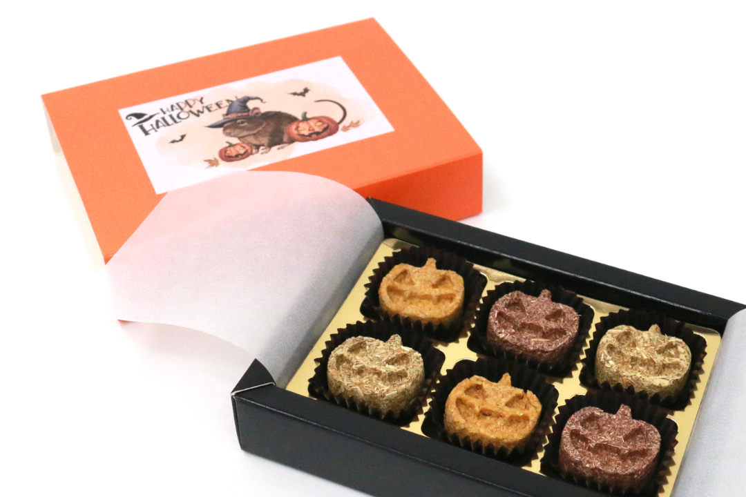 ハロウィンらしい鮮やかなオレンジのBOXに詰めました。