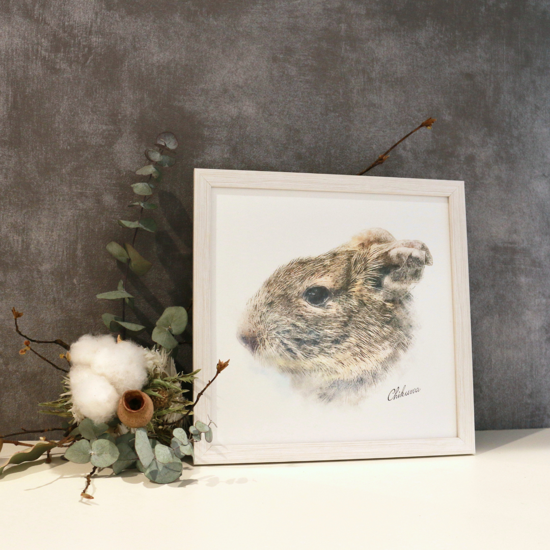 本作品は、お手元に保管されている小動物さんの“ヒゲ”を作品に取り付けて完成させるメモリアルアートです。