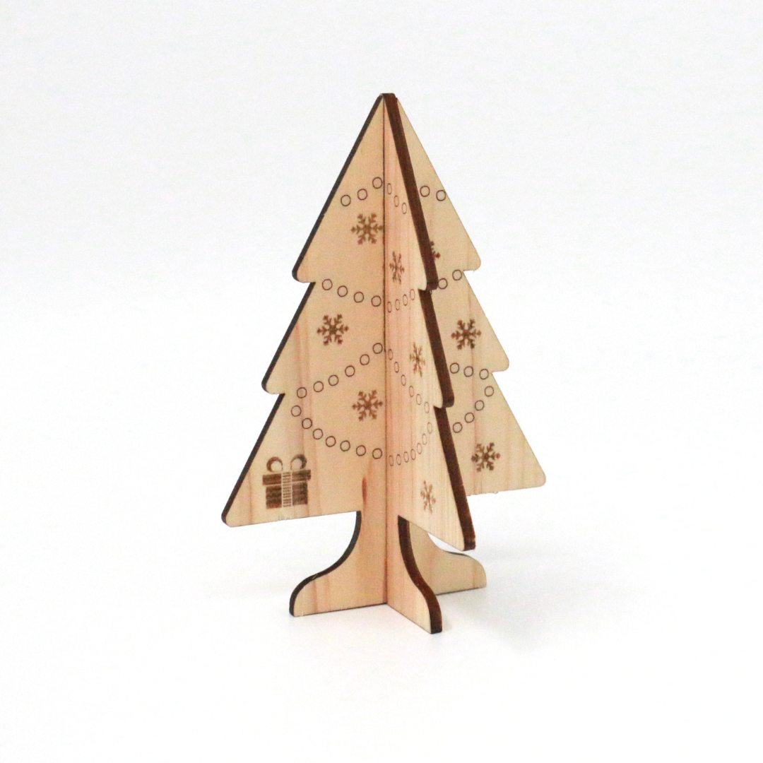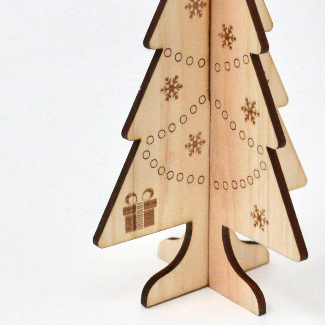 2枚の木のパーツを組み合わせると、簡単に立体的なツリーが完成します。